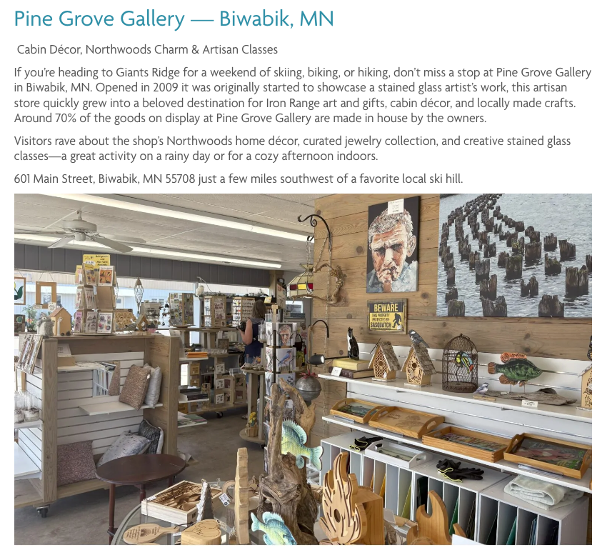 Call 218-865-6125 or stop in Pine Grove Gallery to pre-order.